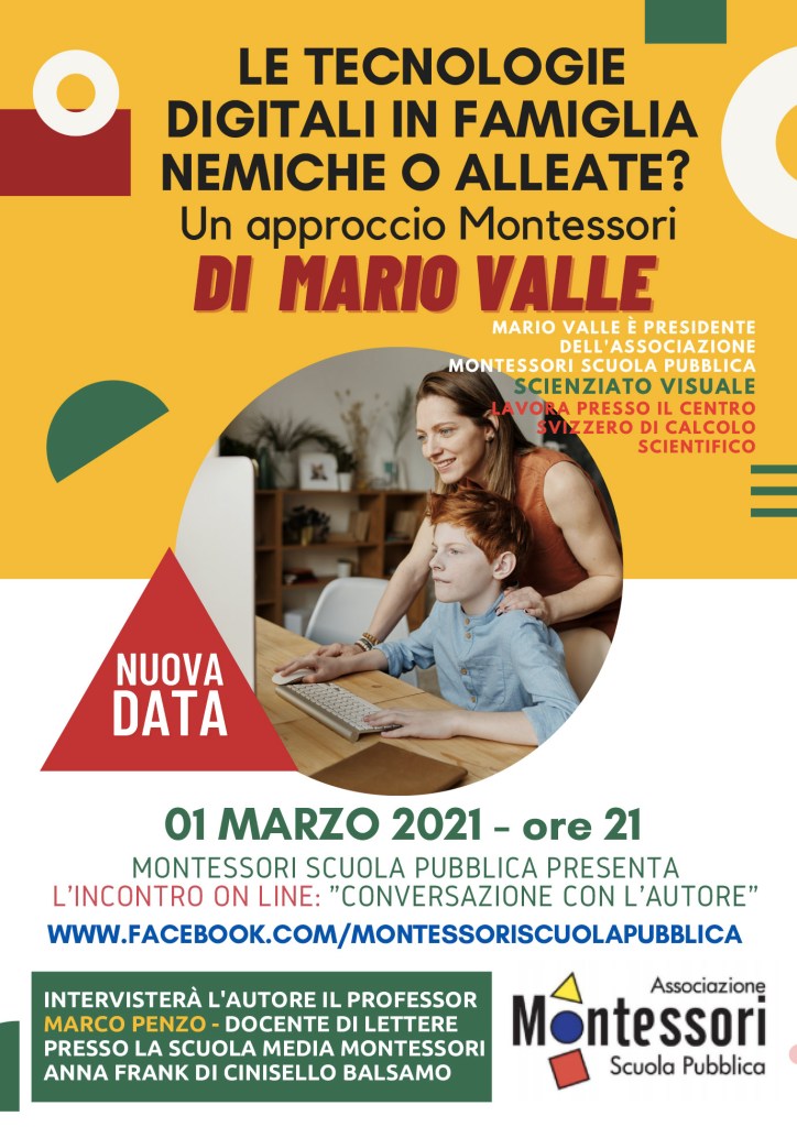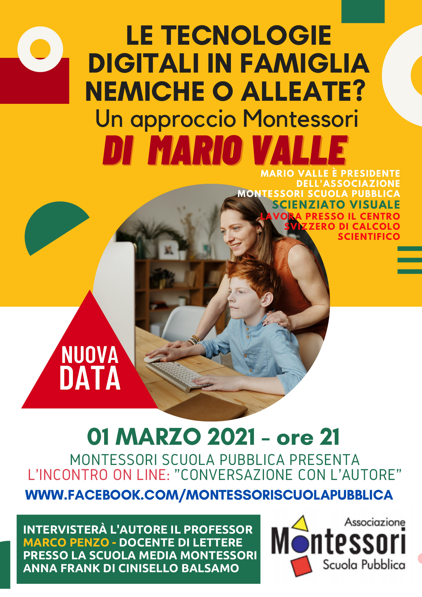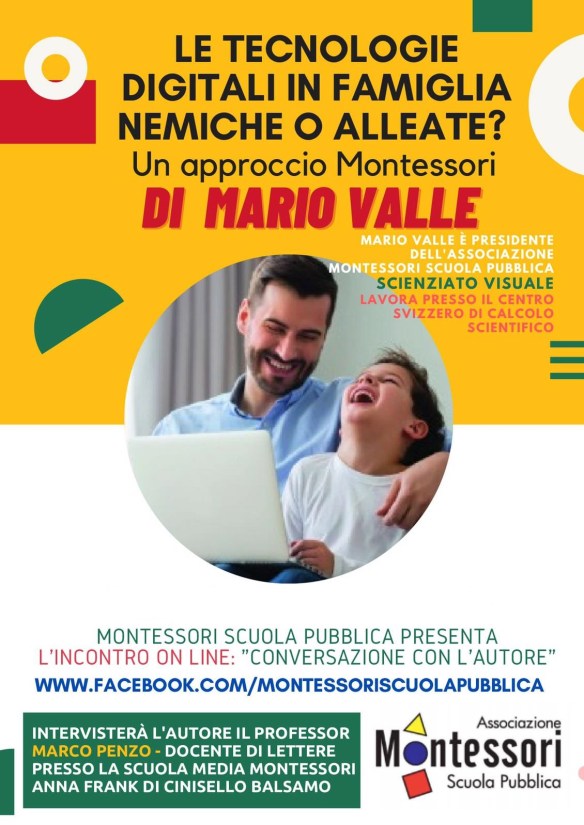 Il Professor MARCO PENZO, docente di Lettere della Scuola Media Montessori Anna Frank di Cinisello Balsamo, intervista MARIO VALLE, Presidente di Montessori Scuola Pubblica e autore del libro: “Le tecnologie digitali in famiglia, nemiche o alleate? Un approccio Montessori”.